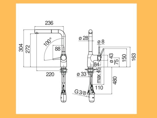 - Chiều cao từ mặt chậu đến đầu vòi 272mm