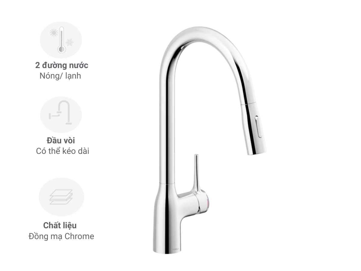 Vòi rửa dây rút có khả năng cung cấp nguồn nước nóng lạnh cơ bản. Đặc biệt, loại vòi này có thiết kế đặc biệt với phần đầu vòi có thể kéo dài, để vừa có thể xả nước dùng cho chậu rửa, vừa có thể kéo dài vòi giúp bạn linh hoạt hơn khi rửa các loại rau củ, chén bát hay cần làm sạch các vật ở xa chậu rửa.