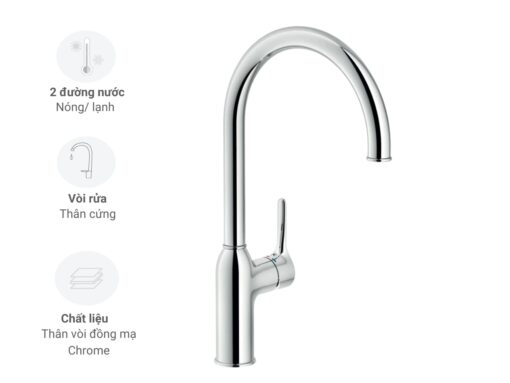 - Vòi cần cứng, đầu vòi cong thanh lịch