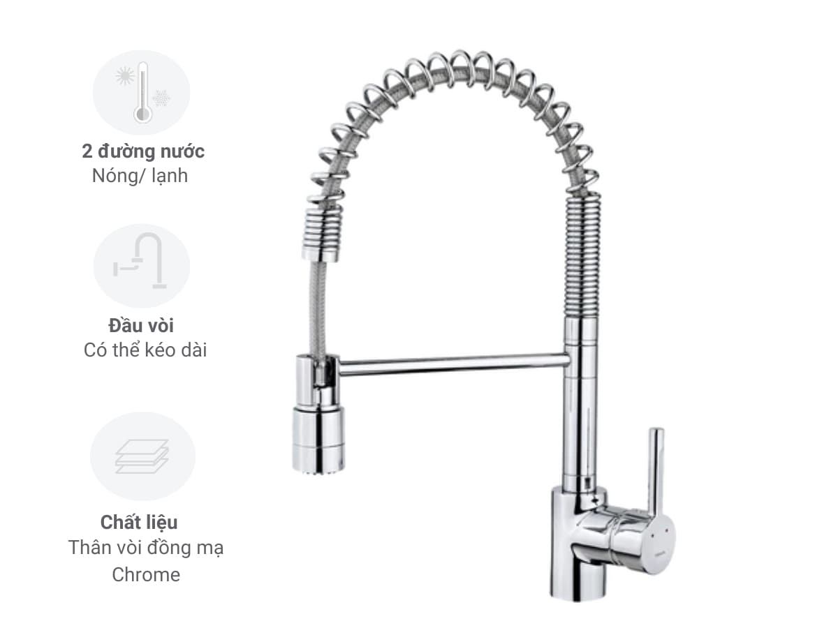 Vòi rửa dây rút có khả năng cung cấp nguồn nước nóng lạnh cơ bản. Đặc biệt, loại vòi này có thiết kế đặc biệt với phần đầu vòi có thể kéo dài, để vừa có thể xả nước dùng cho chậu rửa, vừa có thể kéo dài vòi giúp bạn linh hoạt hơn khi rửa các loại rau củ, chén bát hay cần làm sạch các vật ở xa chậu rửa.
