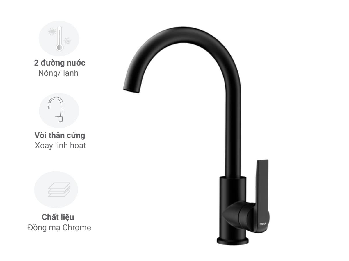 Vòi rửa Teka IN 915 53915620N sở hữu kiểu dáng hiện đại, nổi bật với các đường nét thiết kế vuông vức và góc cạnh, mang đậm phong cách tối giản. Phần đầu vòi được tạo hình thẳng, vươn dài và tạo một góc vuông 90 độ dứt khoát so với thân vòi dạng trụ vuông, mang lại vẻ ngoài mạnh mẽ và độc đáo. Vòi được làm từ chất liệu lõi đồng thau phủ sơn tĩnh điện đen sang trọng, không chỉ mang lại vẻ ngoài tinh tế mà còn đảm bảo độ bền cao. Thân vòi có thể xoay linh hoạt, kết hợp cùng đầu vòi tích hợp lưới tạo bọt chống bám cặn, giúp dòng nước êm ái và tăng tính tiện lợi khi sử dụng.