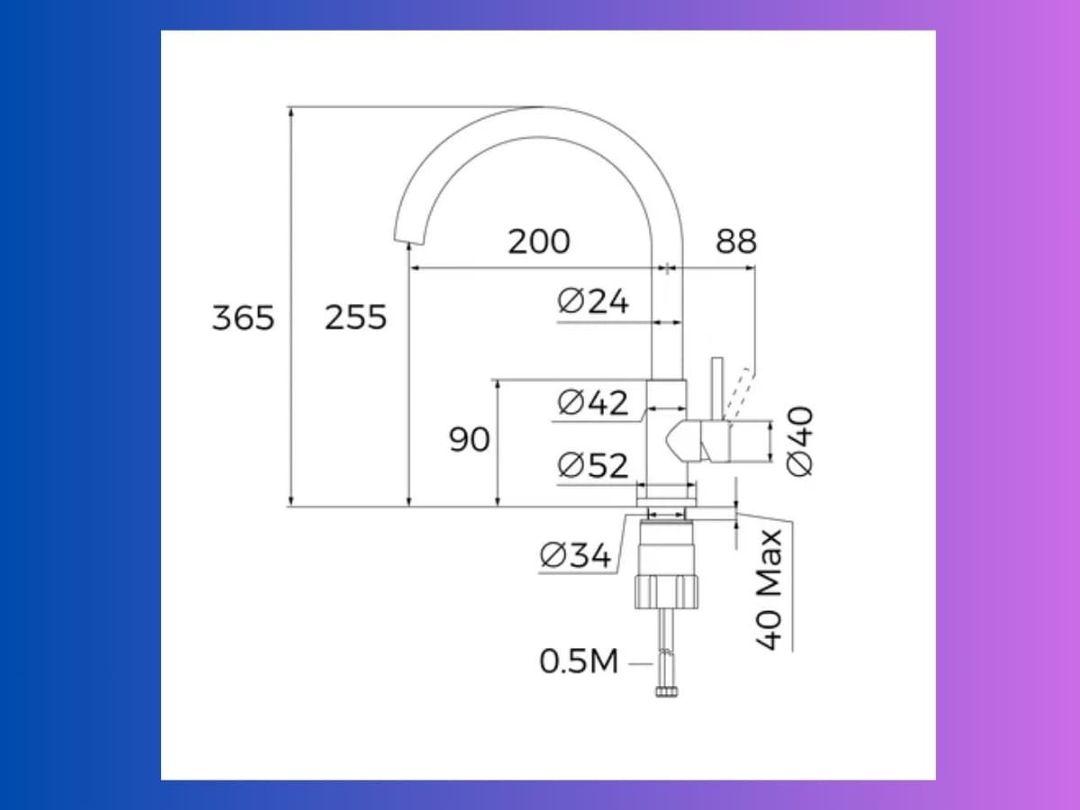• Chiều cao từ mặt chậu đến đầu vòi 255mm