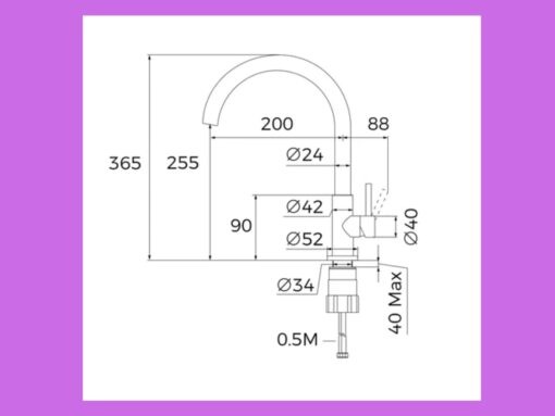 - Chiều cao từ mặt chậu đến đầu vòi: 255mm