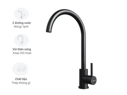 - Chất liệu Toàn bộ thân vòi làm từ thép không gỉ chất lượng cao (AISI 304), bền bỉ và chống gỉ sét.