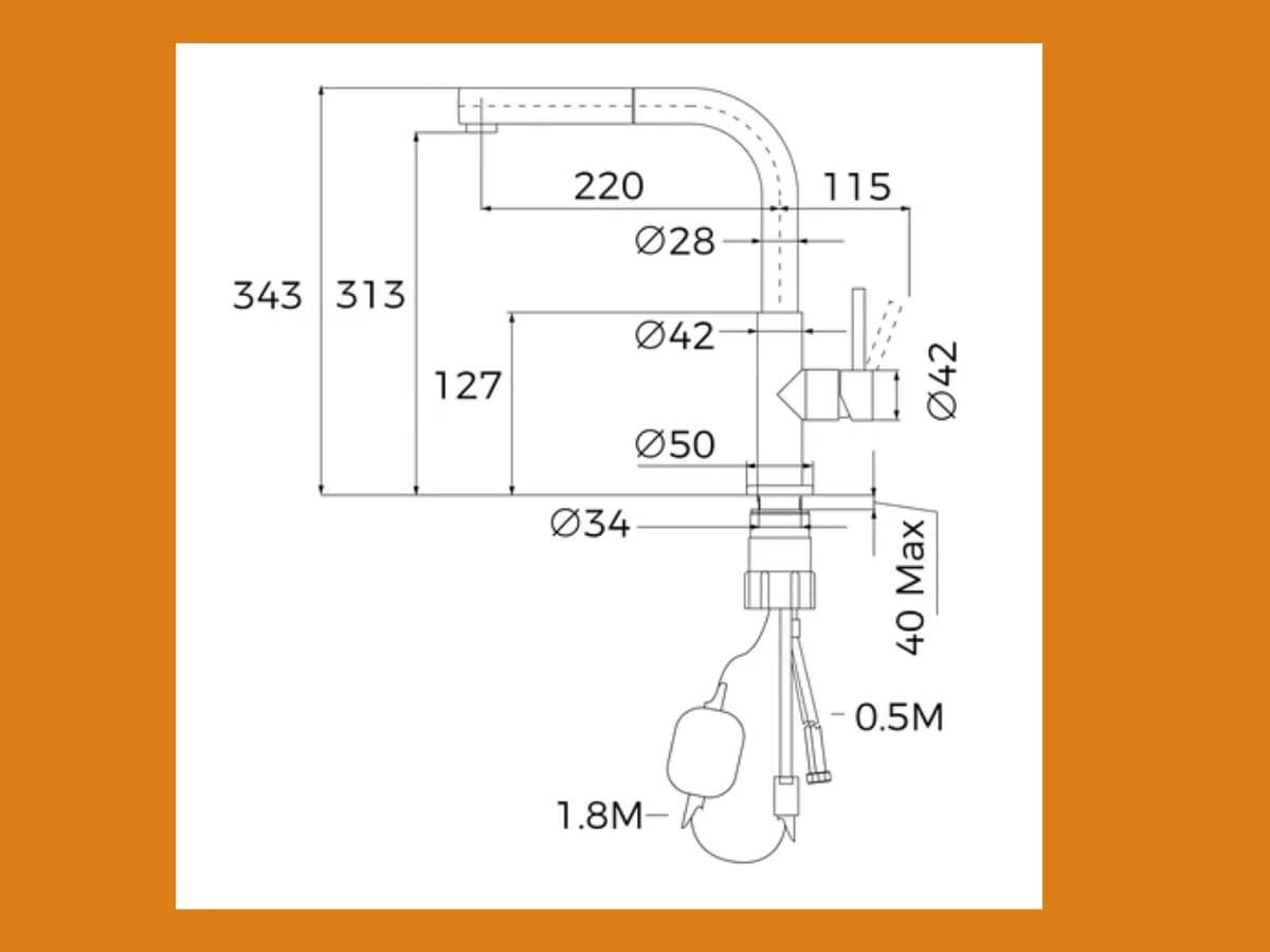 - Chiều cao từ mặt chậu đến đầu vòi: 313mm