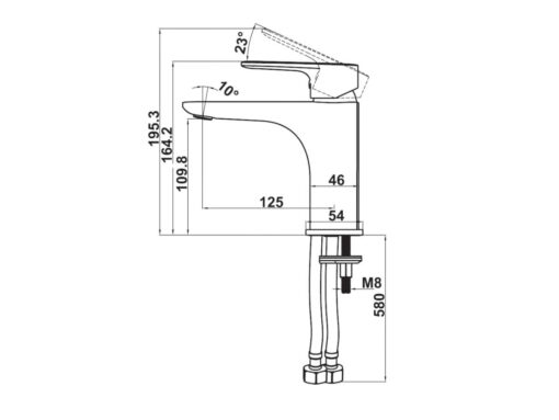 - Thiết kế nhỏ gọn với chiều cao tổng thể 164.2mm và khoảng cách từ đầu vòi đến mặt bàn 109.8mm, phù hợp với nhiều loại chậu rửa khác nhau.