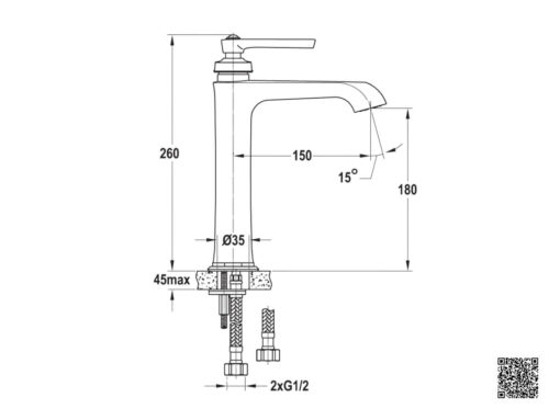• Chiều cao từ đầu vòi đến mặt bàn: 180mm