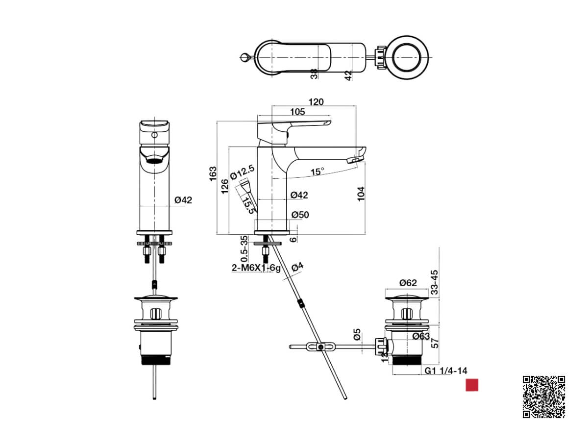 - Chiều cao tổng thể 163mm vừa vặn, đảm bảo sự cân đối khi lắp đặt trong nhiều không gian phòng tắm.